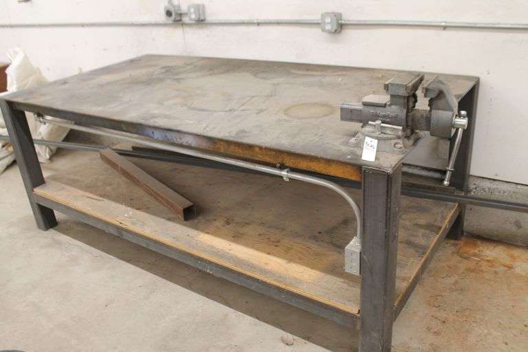LOT 181 - "Custom Build HD Work Bench 1/2 inch Top 8ft. Long 4ft. Wide 36inches Tall Sells with the vise"